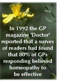 In 1992 the GPs' newspaper 'Doctor' reported that a survey of readers had found that 80% of GPs responding believed homeopathy to be effective, and 21% believed that, in certain circumstances, it was more effective than conventional medicine. A study of the views of GPs on complementary therapies carried out in Lothian19, revealed that many had a surprisingly responsive attitude towards non-traditional forms of medicine. The study was undertaken to find out what support there would be among GPs for a homeopathic service. It found that only 10% of GPs who responded had never recommended or referred patients for any complementary therapy, while 69% had referred patients for homeopathy. It also revealed that 37% of GPs had some training in complementary therapies, and 46% wanted training or further training in a complementary therapy, particularly homeopathy. 74% said they would welcome a specialist homeopathic service in Lothian. Lothian now has a well-established and successful service, funded by the health board. |